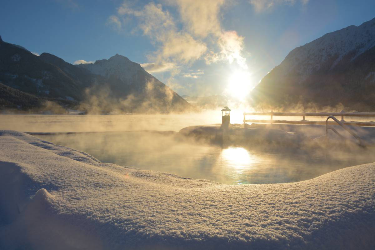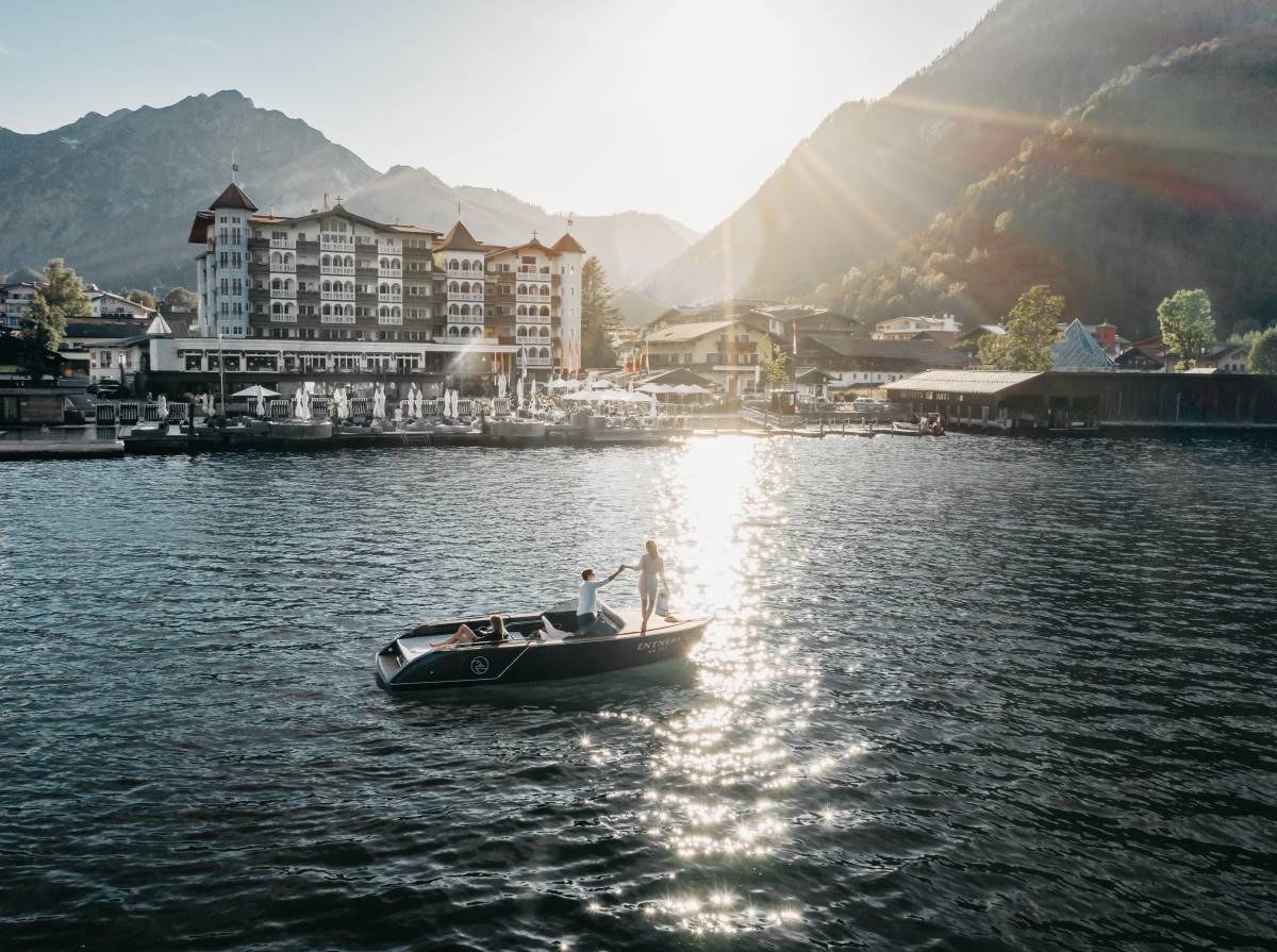 Ob im See Spa mit beheiztem Infinity Pool und Panoramasauna, umhüllt von frischer Tiroler Gebirgsluft und begleitet vom leichten Wellenschlag des Achensees. Ob in der kuschelig warmen Entners Indoor Wellnesswelt auf 3 Etagen. Oder bei einem romantischen Fine Dining mit internationaler Küche und Weinen am Logenplatz auf der Panoramaterrasse. Das ist Romantikurlaub de luxe zwischen Bergen und See. Pure Sinnlichkeit zu Zweit im Einklang mit der Natur.