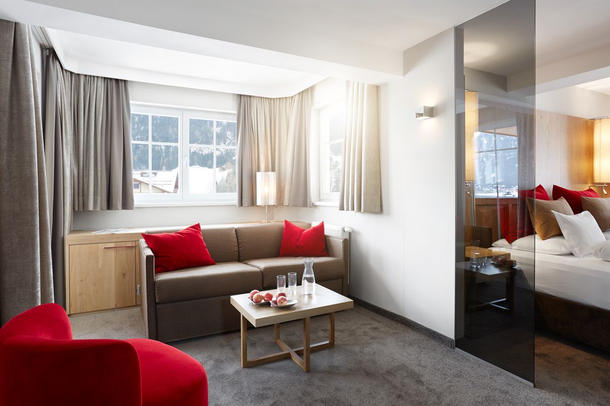 Wenn schon beim Aufwachen das in Sonnenlicht getauchte Karwendelgebirge grüßt, dann genießen Sie es in unseren Alpin Style-Zimmern im 2. bis 6. Stock. Hier finden Sie alles, was Urlaub bei uns so einzigartig macht: moderne Einrichtung mit kostbaren Designer-Möbeln, super Schlafkomfort dank durchgehender Matratze und Wohlfühlauflage und einen Panoramablick auf die Berge – direkt vom Bett aus. Alpin-moderner Stil mit sonnendurchfluteten Räumen und herrlichem Bergpanorama rund um die Uhr mit teilweise verglastem Designer-Bad.