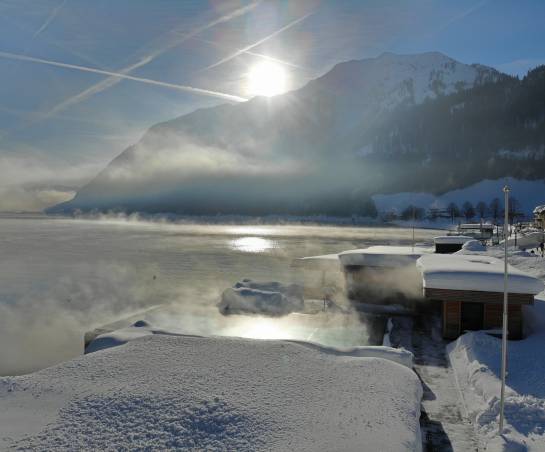 A holiday at Hotel Entners am See in Tyrol: That means savoring between mountains and the lake. Feeling how the water caresses your skin. Letting your gaze and your thoughts across the lake. The mountains are within reach. Where the blue of Lake Achensee merges with the blue of the sky. Here you can discover the familiar and the unfamiliar. Let contradictions combine. Summer and winter, Alpine world and beach feeling. A place dedicated to diversity. A lake full of special moments.